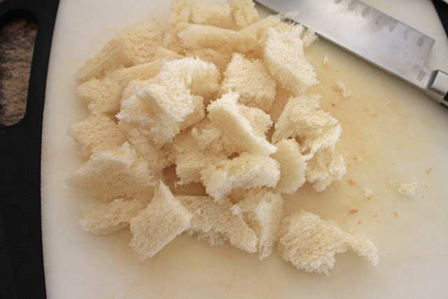 3 slices white sandwich bread (Wonder Bread is good), crusts removed & torn into 1" pieces